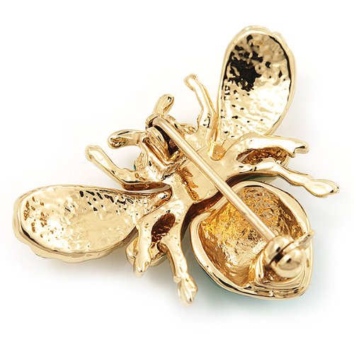-. Title : Small Funky Bee Brooch In Gold Plated Metal - 2.5cm Length