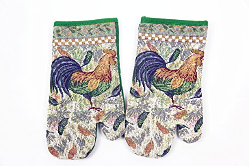 Woven Tapestry Oven Mitt Rooster Design Everyday Kitchen Basic Set of 2