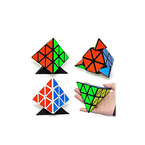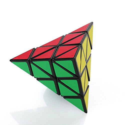 -. Feature : Fast and crisp turning, good cornering. / Pyramid Shape of puzzle provides hours of fun time. / 4 Sides Fluorescent Sticker: Green, Blue, Red, Yellow. / Solve it by making each side one solid color. / Smooth, Highly recommended cube set.