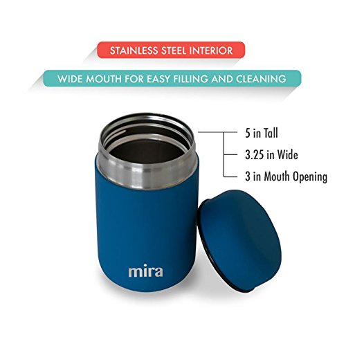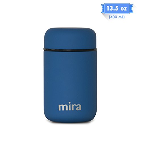 Studio : MIRA Brands Publisher : MIRA Brands Product Description MIRA Lunch, Food Jar, Vacuum Insulated Lunch Thermos, 13.5 Oz High-Quality: The MIRA durable lunch food jar is made of 18/8 food-grade stainless steel. The high-quality insulated lunch container keeps your healthy, homemade and delicious lunches and snacks hot for up to 5 hours or cold for up to 10 hours in this double wall vacuum jar. Eco-friendly, reusable, easy-to-fill wide mouth is also easy to clean. Large Capacity: The stainless steel lunch jar has a 13.5 oz (400 ml) capacity. The right size for a child's lunch or a side to an adult's meal. Our leak-proof stainless steel food storage containers are BPA, phthalates, lead and PVC free. Endless Storage Choices: Excellent choice for soups, pasta, fresh or dried fruit, pretzels and much more! MIRA Eco-Friendly reusable lunch jar for kids and adults reinforces portion control. Compact, Easy to Pack: This easy to open containers is perfect for a child's lunchbox or an adult's briefcase. No matter how much it moves around, the firm seal will prevent messy leaks. Satisfaction Guarantee: Buy with confidence! Perfect gift for birthdays or any occasion. We have great confidence in the quality of our products, which is why we are offering you a risk-free purchase. In the unlikely event our product fails to meet or exceed your expectations, you may return our product within the first 30 days post-purchase to receive a FULL refund. 0