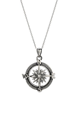 -. Title : Sterling Silver Compass Pendant Necklace, 18 Inches