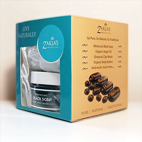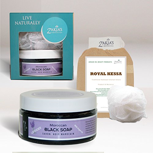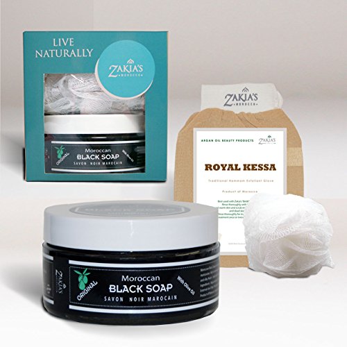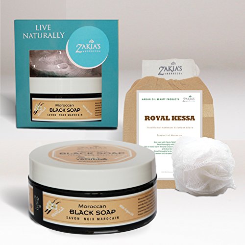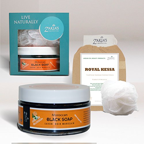 Great value - Moroccan Black Soap, Kessa Exfoliating Glove & Loofah puff