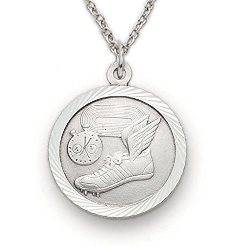 -. Title : Sterling Silver Track Sports Medal with Saint Christopher Back, 3/4 Inch