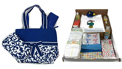 -. Title : Sunshine Gift Baskets - Blue Diaper Bag with Changing Pad and 101 Piece Starter Set