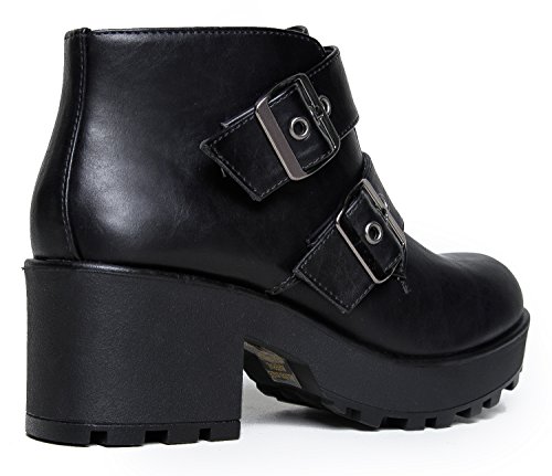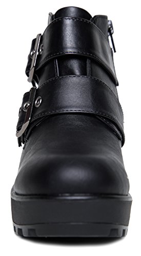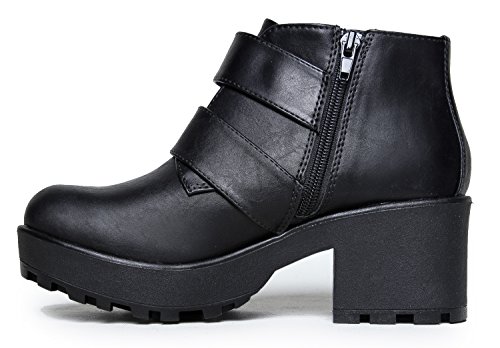 -. Binding : Apparel -. Brand : J. Adams -. Department : womens -. Feature : ROCK THE EDGE-DRIVEN LOOK!: These amazing chunky platforms were born to turn heads! With a soft supple premium upper, these conform to your ankles for a custom fit, these rocker boots look simply stunning. / REVOLUTIONARY & LIFTED ESSENTIAL: Essential yet amazing designer inspired platforms give us a boost in height and these are wearable all day long. Solid, sturdy design featuring a dual buckle action for a custom fit. These go well with jeans, shorts and your everyday casual wear! / EFFORTLESS COMFORT & SLIP RESISTANT: Cushioned insole for comfort and support. A sturdy rubber outsole ensures comfort through prolonged wear. A nice boosted platform adds height and comfort in each and every step. / THE SMOOTH PERSONALITY - PLATFORM FEVER!: The new modern shoe to reflect your most excellent and personal style. A smooth and classic silhouette to instantly add a an elevated touch to all your outfits. / MEASUREMENTS: 2.5" Heel. 6" Shaft. 1" Platform True to Size Fit. -. ProductGroup : Shoes -. ProductTypeName : SHOES -. Title : Platform Ankle Boot - Edgy Low Chunky Biker Bootie - Trendy Buckle Strap Lug Sole - Round Closed Toe - Grunge Elevated Heel Casual Boot