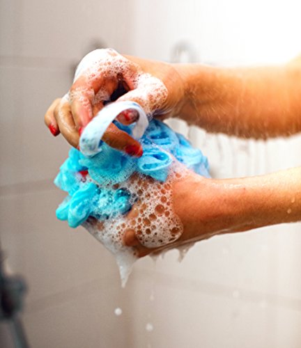Lightly caress the luxury bath sponge scrubber across your skin during your shower and squeeze to release foaming soap for a gentle experience, or take advantage of the mesh texture for a deeper scrub with excellent exfoliation. You will realized by yourself that it's a perfect exfoliating mesh pouf for sensitive skin body wash. Replace your loofah bath pouf as often as you like with the convenient 3-piece pack! High quality Luffa sponges for home/bathroom come in a lovely light blue color.