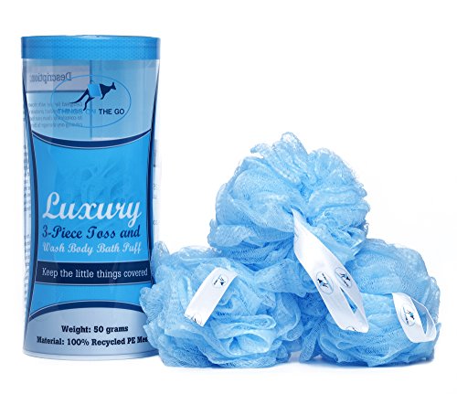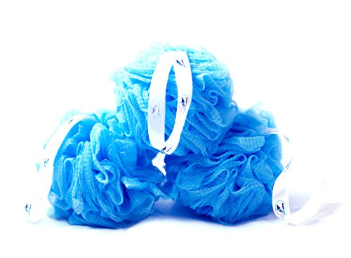 PERFECT PACKAGING FOR LONG TERM USE: 3-piece Pack of this light blue scrubbers comes to you in a perfectly designed tube that you can store for long periods to keep your Luxury Bath Pouf in perfect condition. Each shower pouf weighs 50 grams. Thats why it's a very good choice for your Home/Bathroom needs.