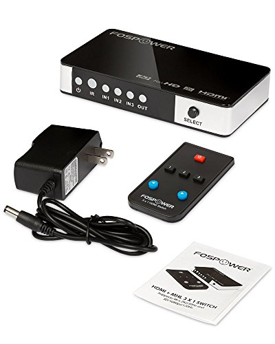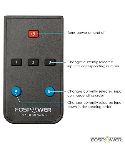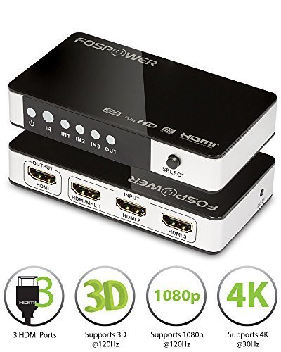 HDMI Switch, FosPower (3 Ports) 3x1 HDMI Switcher - Support Ultra HD 4K x 2K | MHL | 3D 1080p - Includes IR Remote Control and Power Adapter