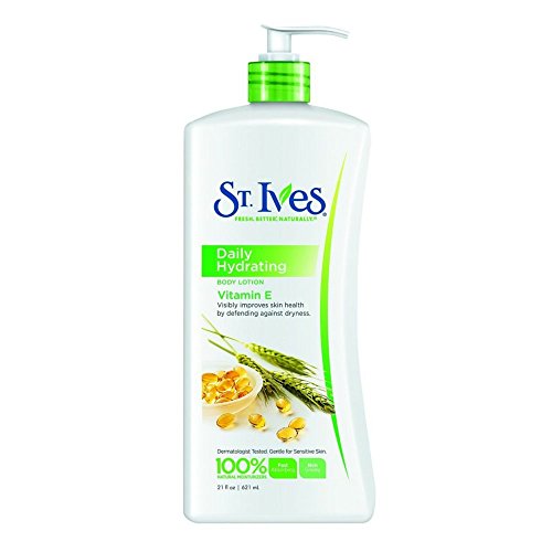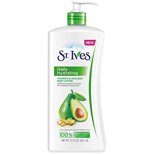 -. Binding : Health and Beauty -. Brand : St. Ives -. EAN : 0787461536797 -. Feature : Provides immediate moisture, while helping to protect against future dry skin / Nutrient-rich formula is packed with the powerful antioxidants of Vitamin E / St. Ives formulas use effective, natural ingredients for fresher, younger looking skin / Non-irritating; 100% natural moisturizers; formulated without parabens and phthalates; dermatologist-tested; no animal-derived ingredients -. Label : St. Ives -. Manufacturer : St. Ives -. Model : thomaswi -. MPN : U-BB-1949 -. NumberOfItems : 1 -. PackageQuantity : 1 -. PartNumber : U-BB-1949 -. ProductGroup : Grocery -. ProductTypeName : BEAUTY -. PublicationDate : 2015-09-01 -. Publisher : St. Ives -. Size : 21FZ -. Studio : St. Ives -. Title : St. Ives Daily Hydrating Body Lotion, Vitamin E and Avocado 21 oz -. UPC : 077043608036