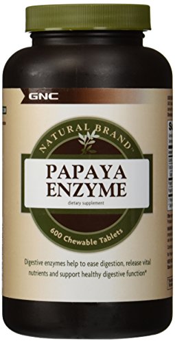 -. Binding : Health and Beauty -. Brand : GNC -. Feature : Enzymes help to ease digestion, release vital nutrients and support a healthy digestive function. / Papaya supplies the proteolytic enzyme papain, which aids in the digestion of proteins. / 600 Delicious chewable tablets. / Made in the USA -. Label : GNC -. Manufacturer : GNC -. ProductGroup : Health and Beauty -. ProductTypeName : HEALTH_PERSONAL_CARE -. Publisher : GNC -. Studio : GNC -. Title : GNC Natural Brand Papaya Enzyme -- 600 Chewable Tablets