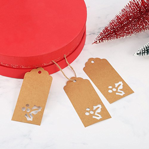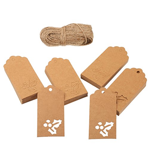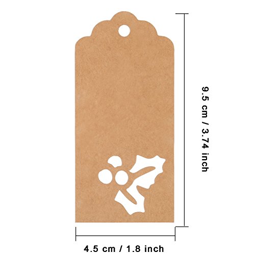 Material: These blank gift tags are made of good quality kraft card paper, the surface touches smooth and writes well. Twine and shape: The twine in the package is long enough for your use and the hollow shape of holly berries are beautiful and cute. Pre-punched holes: These kraft tags are punched with holes, easy and convenient for you to hang with a twine. Blank to write and paint: There is enough blank places for you to write down some words. Wide application: Good decorations for Christmas favor, hanging on Christmas tree, on gift wrapping. Can also use them as clothes tags, price tags, gift tags, student words cards, bookmarks tags, thank you notes, scrapbook, arts and craft make items, etc. Specifications: Material: good quality paper card Size: 9.5 x 4.5 cm/ 3.74 x 1.8 inches (L x W) Color: brown Length of twine: 30 meters/ 98.4 feet Package content: 100 x Brown paper tag 1 x Twine (30 m) 0