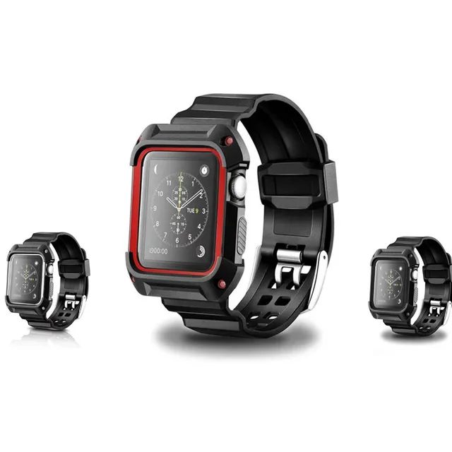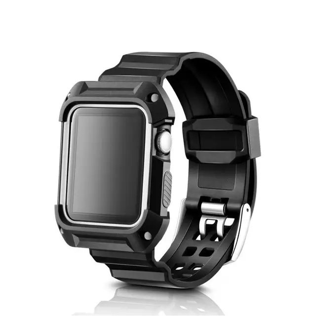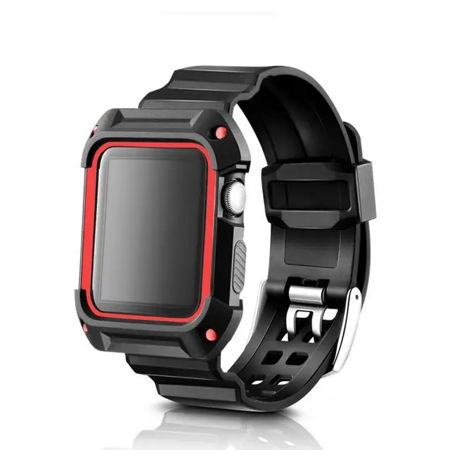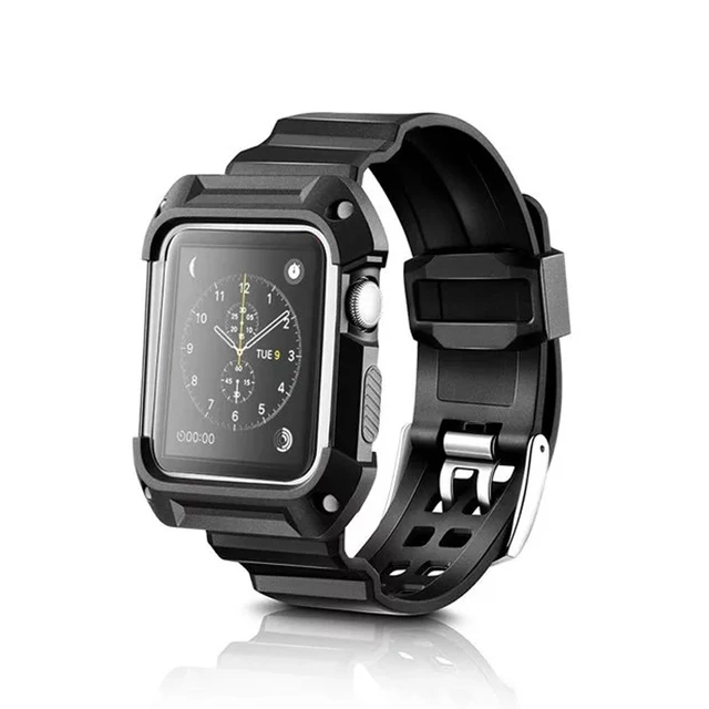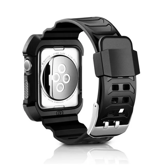 | [해외]스포츠 시계 스트랩 + 케이스 apple watch 밴드 42 미리메터 38 미리메터 손목 팔찌 고무 손목 시계 + 보호 커버 iwatch 시리즈 2/1 |