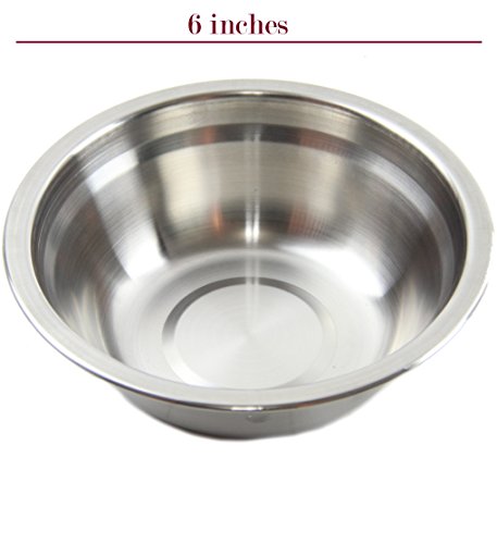 Our Stainless 6" bowl can be used as a serving piece or mixing bowls, It has Flat top rim and a curved lip that restrains splatters and makes the bowl easy to grip pour, there are no sharp edges,