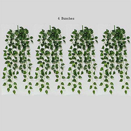 Artificial Greenery Vine Leaves Garland Artificial Flowers Hanging Vine Plant Leaves For Home Garden Wall Decoration Pack Of 4 (Ivy)