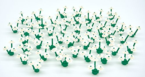 -. Feature : White L.E.G.O Flowers / 50x Green Grass/Plant Stems / 150x White Flower Petals