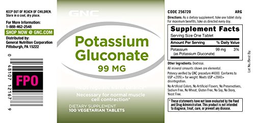 -. Title : GNC Potassium Gluconate 99 MG