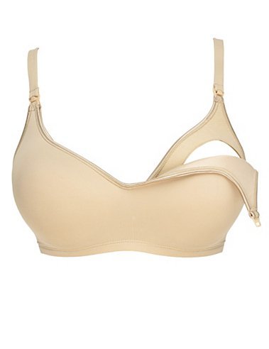 La Leche League Soft Cup Padded Bra Style 4214/4214X A wireless, seamless padded bra made of a soft microfiber fabric. It has a one-hand drop cup for easy nursing.