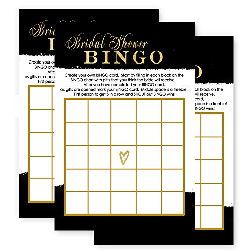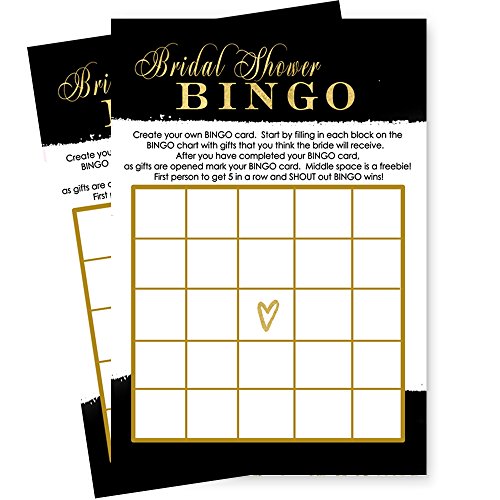 Black and Gold Bridal Shower Bingo Game Card Set of 25