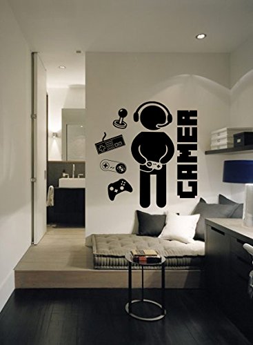 Gamer with Controller Quote Decal Sticker Wall Vinyl Art Design Gamer Cool Funny Game Room nursery wall decal for kid