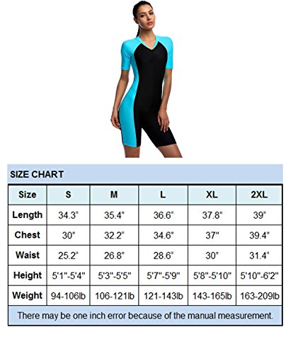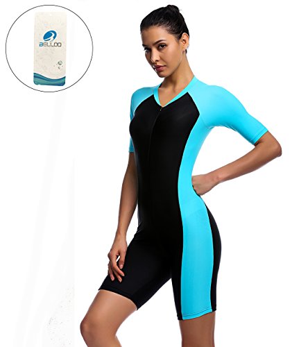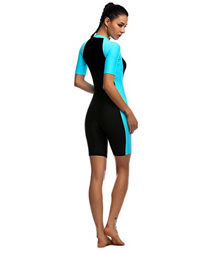 Swimsuit for Woman Belloo One Piece Short-sleeve Surfing Suit Sun Protection, Lightblue, X-Large