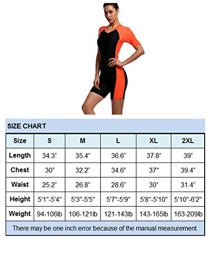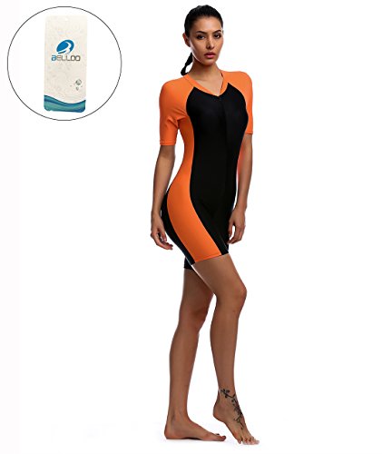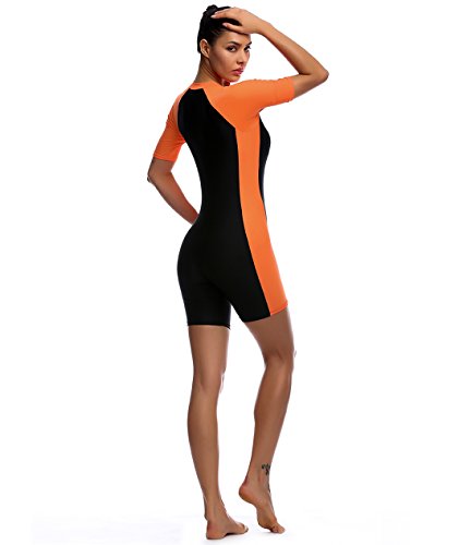 One Piece Swimsuit for Woman Belloo Short-sleeve Surfing Suit Sun Protection, Orange, X-Large