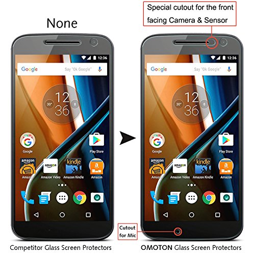 -. Binding : Electronics -. Brand : OMOTON -. Feature : 1. Particular Design: Laser-cut dimensions provide maximum protection for the screen of your device. Only fit for Moto G 4th Generation (5.5 inch), will not fit for Moto G Plus 4th generation and any other smartphones / 2. Scratch Resistant: This 9H Hardness screen protector can effectively protect your Moto G 4th Generation from unwanted scuffs and scratches by knife, keys and some other hard substances / 3. Easy installation: Bubble-Free Adhesive makes it easy to install this Moto G4 Screen protector / 4. HD Clarity: High-Transparency provide you high-definition clear viewing. Hydrophobic Oleophobic screen coating protects against sweat and oil residue from fingerP.R.Ints and keeps high-sensitivity touch response. / 5. BUY 2 SAVE 5%: If you buy 2 or more you will save 5% for each one at checkout (no coupon necessary). Buy for a friend or loved one and save together. And OMOTON Mall provide you friendly customer service and lifetime warranty -. Label : OMOTON -. Manufacturer : OMOTON -. PackageQuantity : 1 -. ProductGroup : Wireless -. ProductTypeName : PHONE_ACCESSORY -. Publisher : OMOTON -. Studio : OMOTON -. Title : OMOTON Moto G4 / Moto G (4th Generation) Screen protector [2 Pack] - [9H Hardness] [Crystal Clear] [Bubble Free] Tempered Glass Screen Protector for Motorola Moto G (4th Gen.),