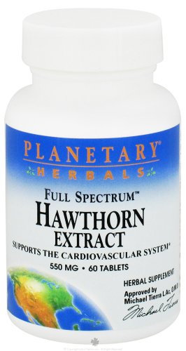 Studio : Planetary Herbals Publisher : Planetary Herbals Binding : Health and Beauty Product Description Supports the Cardiovascular System Planetary Herbals Full Spectrum Hawthorn Extract combines a concentrated extract of hawthorn leaves and flowers with the whole berries, to deliver a full spectrum of valuable hawthorn constituents. Hawthorn is the primary herb used by herbalists in America and Europe to support a healthy heart. The leaves, berries and flowers are rich in flavonoids and procyanidins renowned for their ability to support the normal activity and integrity of the heart. 0