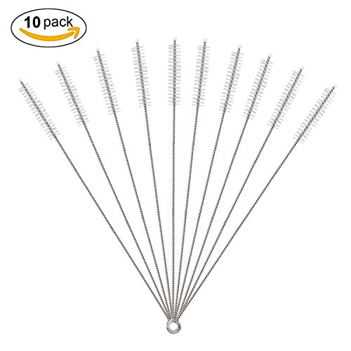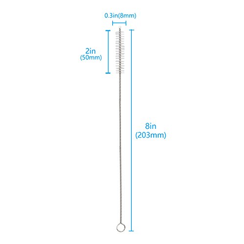 - 10 PCS tube cleaning brush set total length: 8"(203mm), Bristle head: 2"(50mm) long x 0.3"(8mm) diameter, stiff nylon bristles tube brushes for cleaning