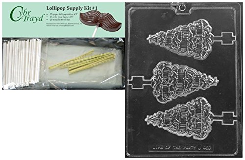 CybrTrayd 45st25-C469 Very Merry Christmas Lolly Chocolate Mold with 25 Lollipop Sticks, 4.5", Clear