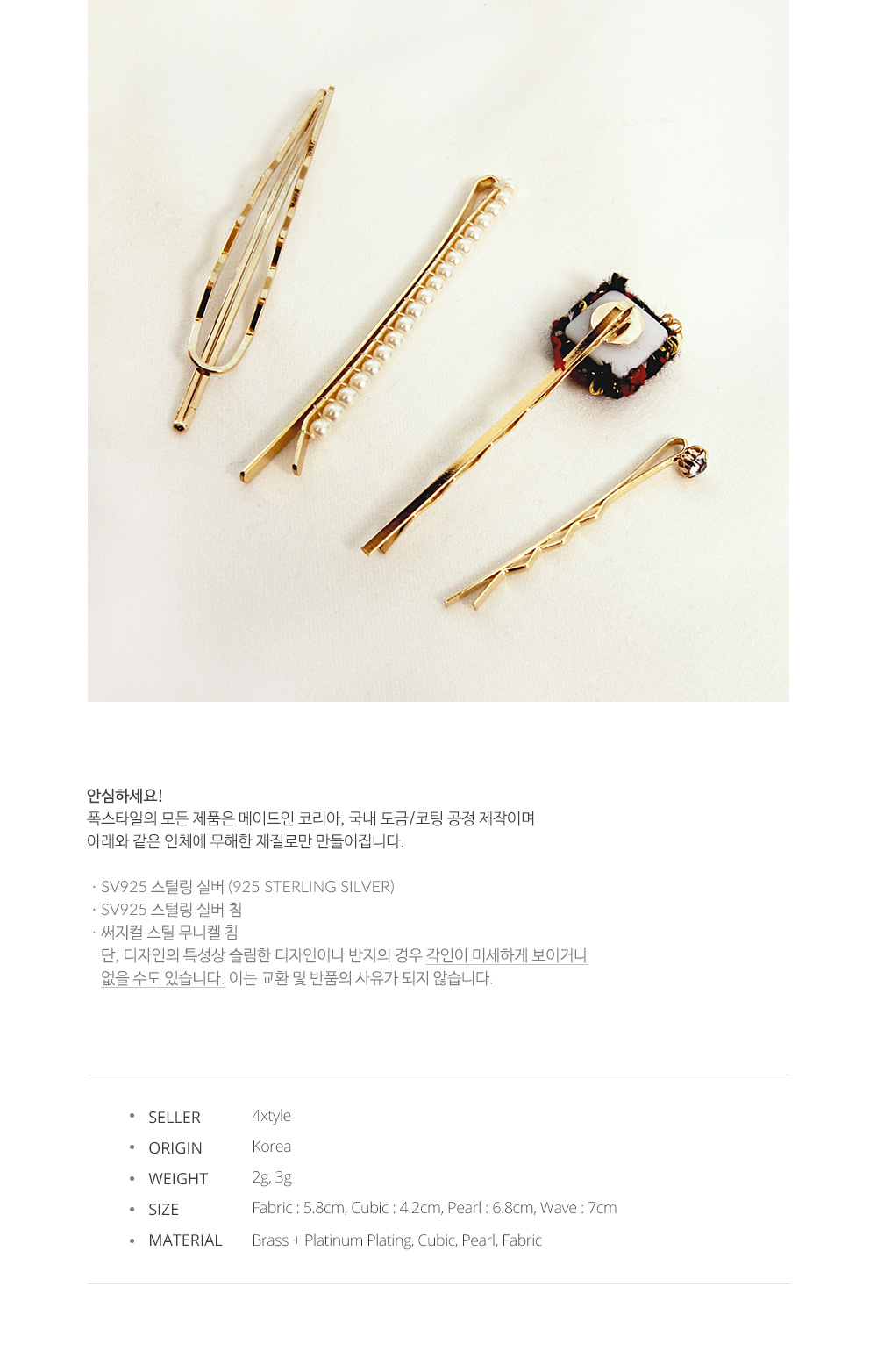 4개 1세트의 실핀으로 구성된 실용적인 헤어핀 세트에요.