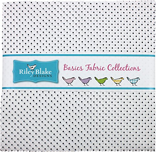 Swiss Dot on White Navy 10" Stacker 42 10-inch Squares Layer Cake Riley Blake Designs 10-660-21-42
