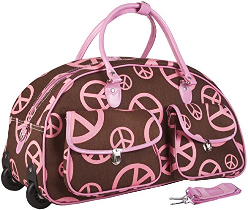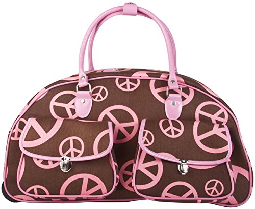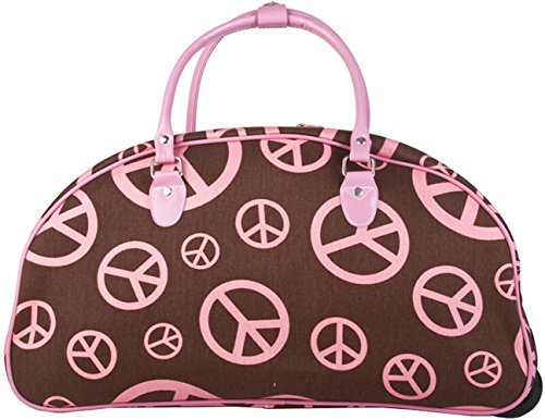 -. Title : Ever Moda Brown Pink Peace Sign Rolling Wheeled Duffle Bag 22-inch
