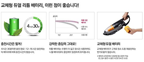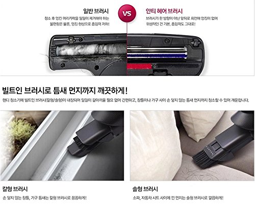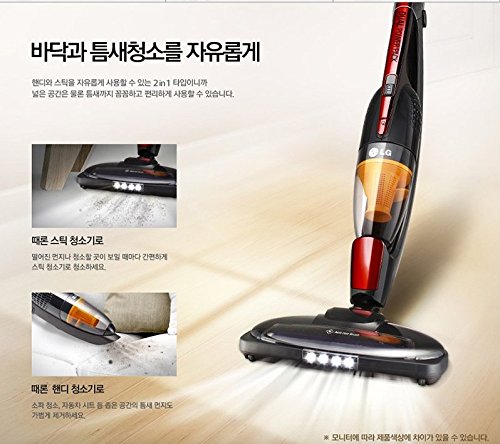 This product's AC power input voltage is AC220V, the plug shape is a C type plug. If your local AC power supply AC100 ~ 120V, you will need a transformer for 220VAC to 110VAC conversion. Korean manual Handy + stick cleaner : * Detachable body Power Supply: Rechargeable Wireless * Charging Method: Stand Mounted * Charging time: 4 hours, 30 minutes * Working hours: Mode for about 35 minutes (maximum 70 minutes) And river mode : 25 minutes ( maximum 50 minutes) * 2 Battery: And dual -replaceable battery ( body + internal) And type: Lithium -ion (Li-ion 18V) * Lamp indicator : charging status , the replacement time Dust collection system: Cyclone Transparent dust Convenience features: * Seulrimruk design : Slim and curved design And EZ Handle * Finger hook Brush: * Floor : And anti- hair : hair , hair tangles removed And LED lighting * Auxiliary : And built-in (for clearance + solhyeong ) Brushes And built-in Mini Power Consumption : 80 W Color: Red Sparkle (Luxury Shine ) Dimensions ( W x D x H ): 10.6 x 7.5x 43.5 in Weight : 6.17 lb