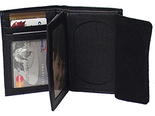 -. Brand : Genuine Leather -. Color : Black -. Department : mens -. EAN : 0723980892631 -. Feature : 7 Credit Cards Slots and 2 Large Compartments for Bills / 2 Windows For Picture/ID / Place for Badge (Badge NOT included). Flap to cover the badge badge / 1 Riveted Hole for Chain Attachment / Wallet has 2 Hidden Pockets -. MPN : 4722 -. PackageQuantity : 1 -. PartNumber : 4722 -. ProductGroup : Apparel -. ProductTypeName : LAGE -. Size : One Size -. Title : Elegant Faux Leather Badge Wallet for Firefighters, Police etc. #4722 US -. UPC : 723980892631