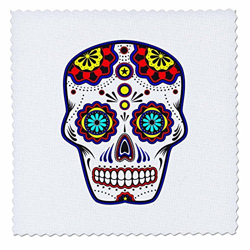 3dRose Sugar Skull, Red, Blue and Yellow - Quilt Square, 6 by 6-Inch (qs_186237_2)