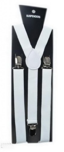 -. Title : Gem Adjustable Braces Suspenders Unisex Neon Glitter Plain Mens Womens Clip-on Suspenders Elastic Y-shape Solids Punk 80's 80s 70s Disco Dance Costume Party Pants (#6 White)