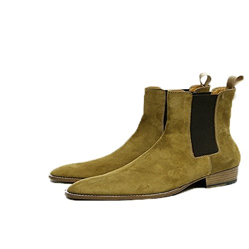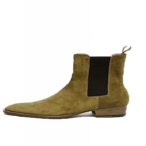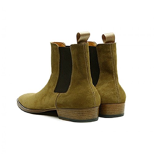 (Jinfu)/Men's/Boots/DIRECT FROM USA/Jinfu Mens Suede Pointed Toe Dark Khaki Color Pull On Chelsea Ankle Boots High Top Winter Shoes