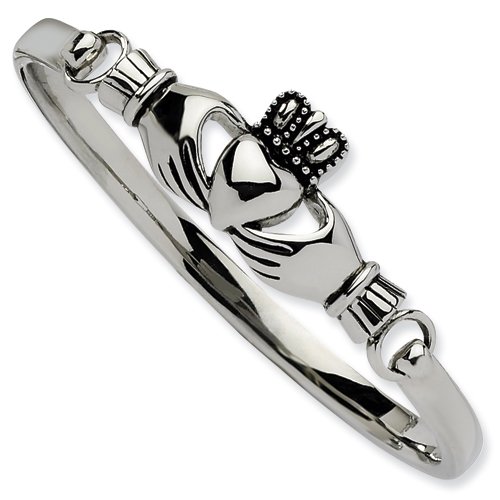 Stainless Steel Claddagh Bangle Bracelet - In Solid Stainless Steel 23.4 Grams - Product Attributes: - Antique finish - Polished - JewelryWeb Style: QTB163972 - FREE gift-ready jewelry boxFeature