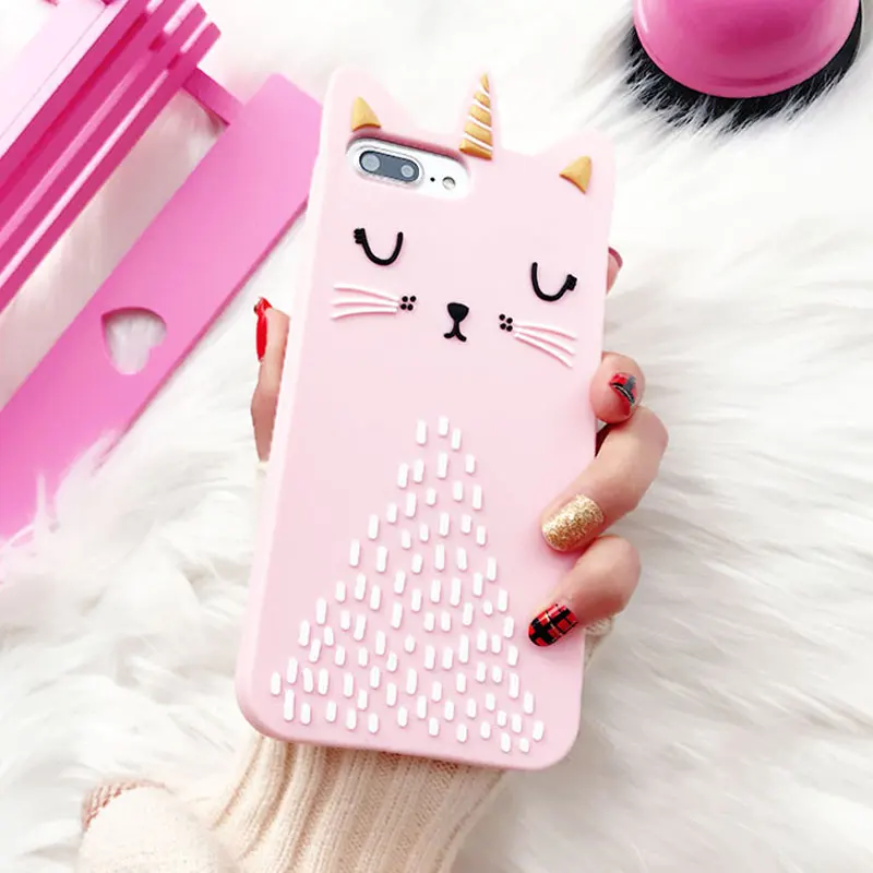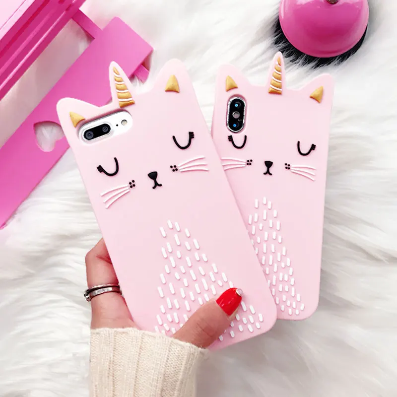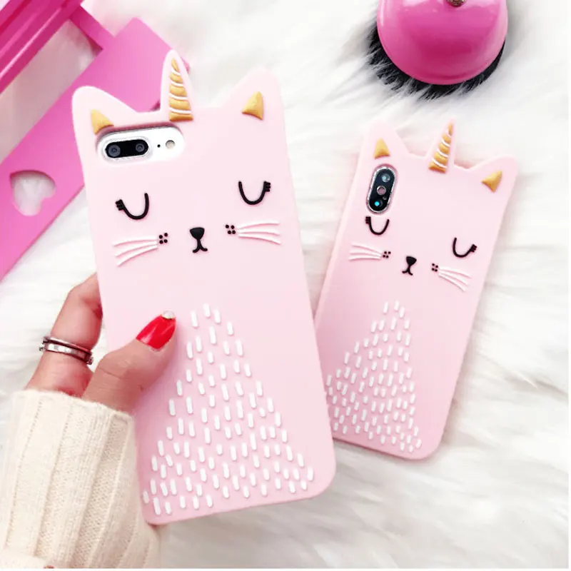 Features:Cartoon Pink Cat Soft Silicone Case Shine