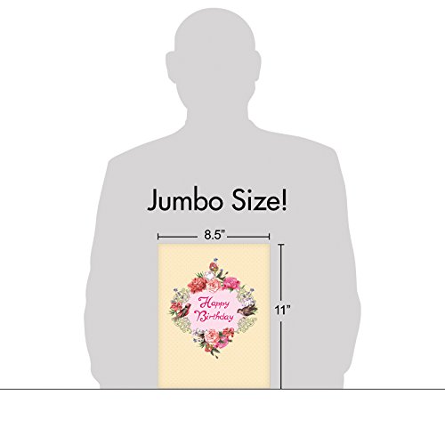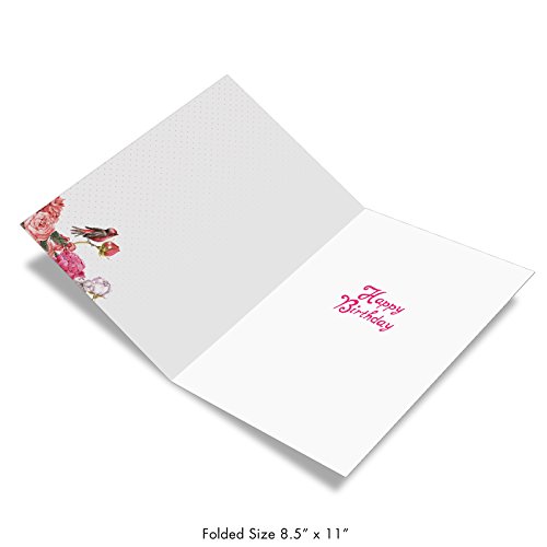 J6577GBDG Jumbo Birthday Card: Birds and Blossoms - Featuring a Beautiful Arrangement of Peonies and the Flower's Fine Feathered Friends, With Envelope (Extra Large Version: 8.5'' x 11'')
