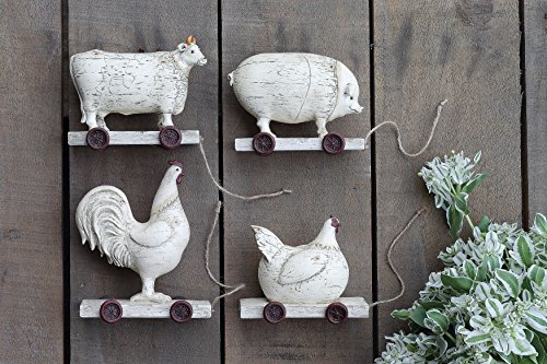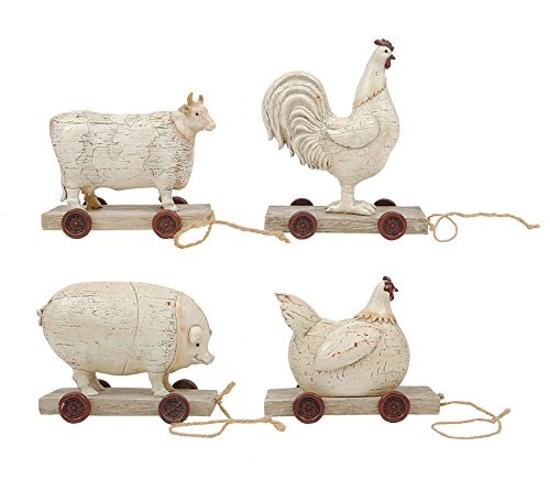 Creative Co-op Resin Farm Animals on Wheels Set, 4 Piece