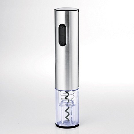 Illuminating---uncorking made easy and fun! A wine opener as entertaining to watch as it is easy to use! See the blue light shine through the action window as the cork is smoothly extracted from your bottle and released---with a simple press of a button. The blue light also shines bright on its recharging stand, doubling its duty as a stylish nightlight. 8-hour charge. Includes foil cutter and instructions. Size: Corkscrew - 10"H x 2-1/8"Dia. ; Base - 5"L x 3-1/2"W Not recommended for synthetic corks.