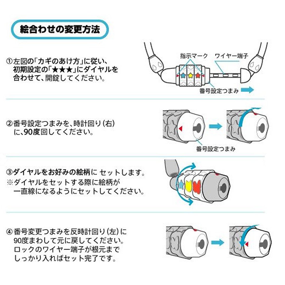 Children's lock which can be unlocked with a combination of favorite illustrations