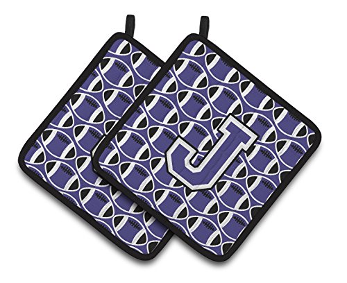 Caroline's Treasures Letter J Football Purple & White Pair of Pot Holders CJ1068-JPTHD, 7.5HX7.5W, Multicolor