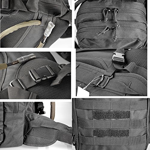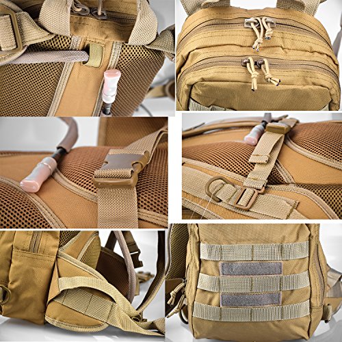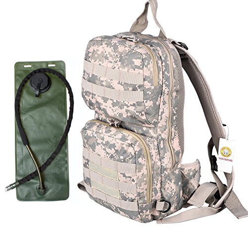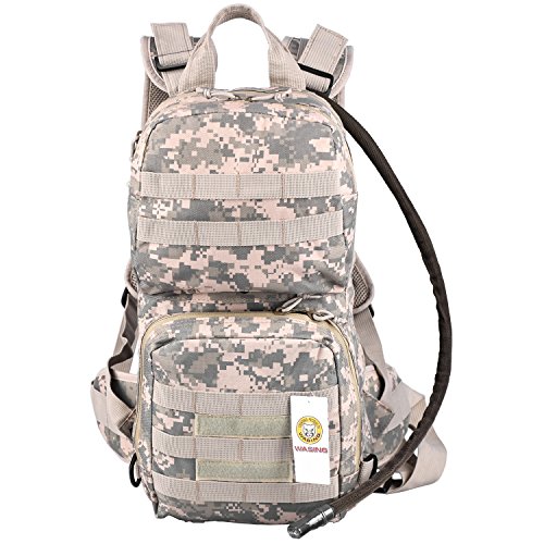WASING Hydration Pack with 3L Bladder and 2 Additional Pockets. Tough Military Style Backpack I...
