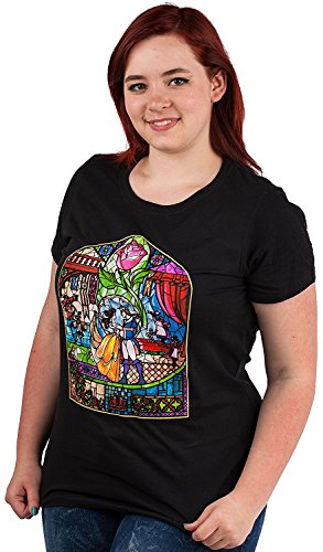 Bell and her Prince are featured on this stained glass window on this black tee.