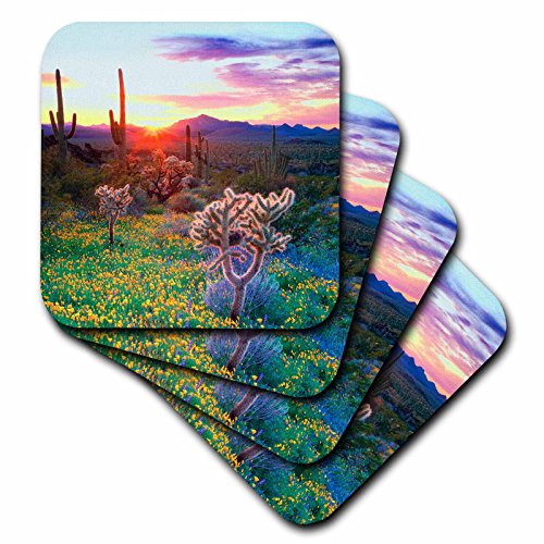 3dRose cst_206299_2 USA, Arizona, Wildflowers & Cacti at Sunset in Organ Pipe Cactus NP Soft Coaster (Set of 8)