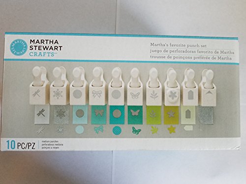 -. Feature : Martha Stewart's favorite 10 medium punches for paper crafting / Each punch is unique in function and shape. / Create something beautiful with this set of punches and your imagination. / Included: Dragonfly, Snowflake, Circle, Bow, Scallop Circle, Butterfly, Branch, Flower (Stamp & Punch), Scallop Tag, and Corner Rounder