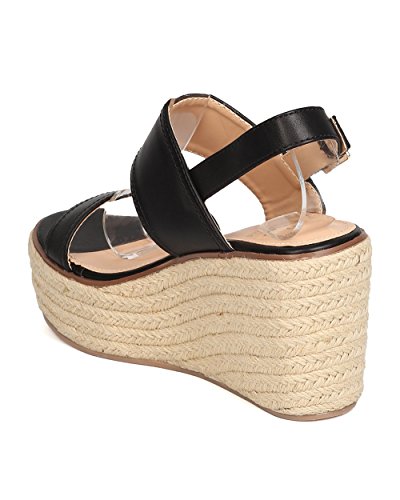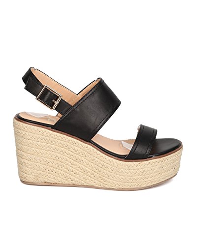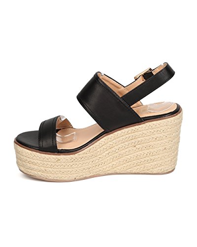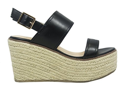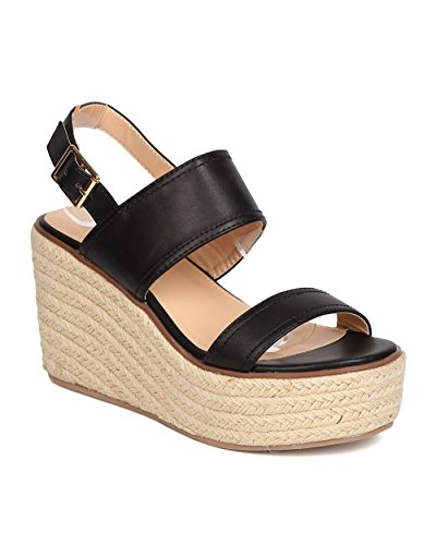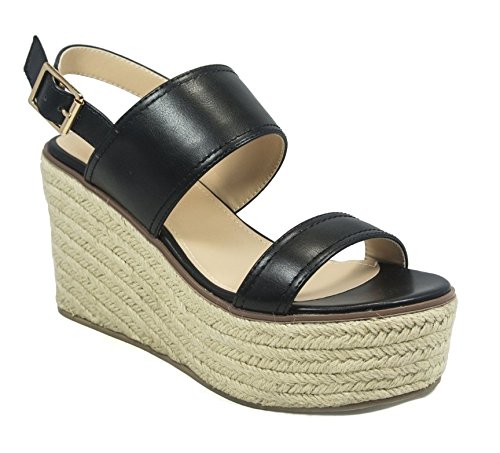Studio : Betani Publisher : Betani Binding : Apparel Product Description These espadrille sandals are made with a leatherette upper, open toe, and double band construction. Also made with a platform wedge heel and slingback strap with adjustable buckle closure. 0