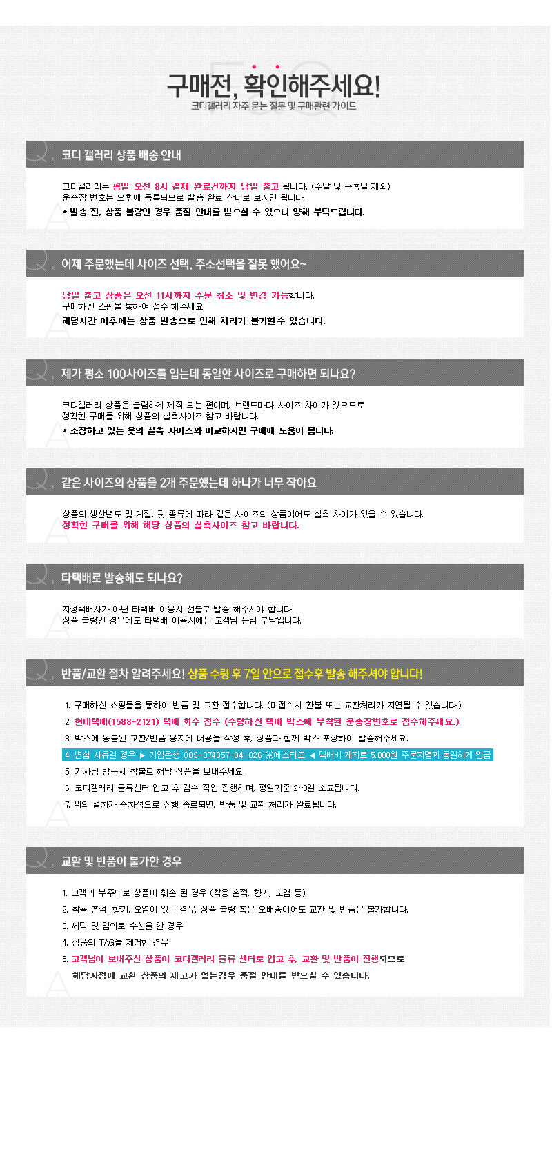 특이 사항 배송, 변경, 반품 환불에 대한 문의는 위 연락처로 문의 주세요.